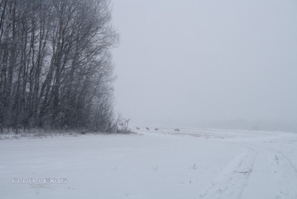 Насчет валенок и тишины - это сильно. Испытал схожие чувства во время этих праздников. Тестил машину на поведение в поле на снегу выше середины колеса. Еснно, зная что помощь рядом. В доме на даче спали друзья(присутствовал LC 100, Митсубис Паджеро 4 дизель, думаю вытянули бы), а я утром поехал в ближайшую деревню за пивом через поле. Возращаюсь, двигател прогрет - еду, поскрипываю снежком - наслаждаюсь - тишина. Такая, что меня не заметили вот эти дикие звери - видно ветер был с другой стороны. Подкрался достаточно близко на безлюдном поле. Я не заядлый охотник, поэтому с собой тока фоторужье. Успел сфоткать:
