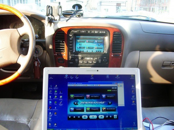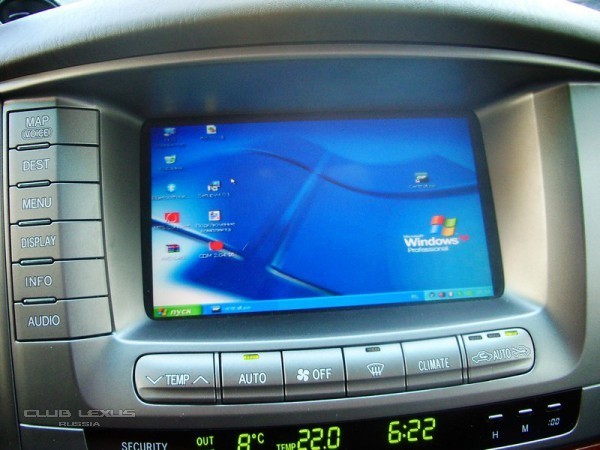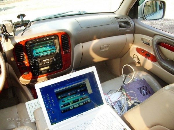 Компьютер устанавливается вместо штатной навигации по пассажирским сидением. Для управлением компьютера устанавливается на шину Tx+ Tx- адаптер AVC-Lan, который считывает команды касаемых навигации, управлением CD ченжером и тачскрина и управлением компьютера через USB порт. Выход видеосигнала подаётся на штатный монитор по RGB + синхронизация. Активируется изображение с компьютера по нажатию кнопки MAP, а управление курсором по прикосновению к экрану.