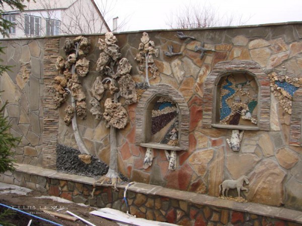 Витька! я правда плин голову ужо поламал, в прошлом годе супруга ели остоновила, настолько фсё задолбало, что хотел 23 метра х 1,8 песчанником выложить. Типа такого, без лепни, но с подобными нишами под цветы: