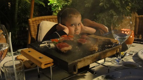 Мясная кухня. Канарская кухня Собственно, ради нее туда и ехали ужинать. Народу вообще никого. Официант был рад несказанно и крутился все время нас. Ну, что сказать про местную кухню… Или мы балованы, или не туда пришли. Козлятину взяли жаренную и тушенную с травами. Есть в тех козлятах толком нечего. Кролик чуть лучше, но то же не айс. И вино местное то же не понравилось. Домашнее в графинах.
