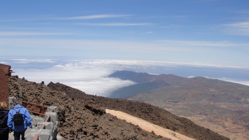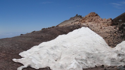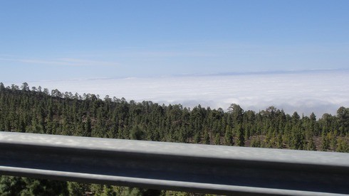 Пришлось ехать с 2-х попыток. Поднимались по дороге через Chio. Было пол бака бензина. Доехали до развилки с дорогой через Vilaflor – загорелась лампа. Пришлось спуститься в Vilaflor и заправиться на всякий случай. По горным дорогам это Икстрейл жрет бензин страшно. Ехали по страшному туману и думали «куда мы прёмся в такую погоду?!» Но выехали – на верху солнце и облака под нами. Красиво. Поднялись на канатке на верх. Снег лежит местами. Младший стырил кусок лавы.))) Сейчас в саду хвастается.