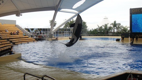 На шоу касаток – есть такой юмор – касатка подплывает к краю бассейна и бьёт хвостом что б облить зрителей. С1-по 5 ряды будете мокрыми. Перед началом по рядам ходит барышня и продает дождевики. Мы купили. По 3 Е – не понадобились – сидели на 6-м)))