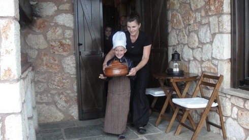 2-я поездка была то же в горы. Молодая семья придумала себе такой дополнительный завтрак - типа - обучение азам греческой кухни. (обучался в основном младший сын)))) Плюс бассейн, корт и отличный вид на все 3 пальца Халкидиков. Ну и ужин.