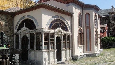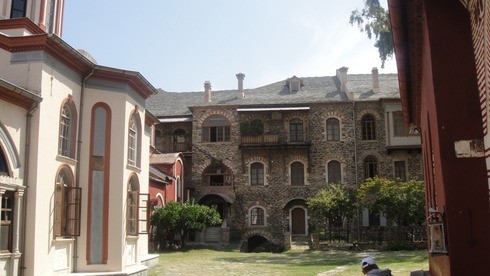 Под занавес приехали в монастырь русской православной церкви. Св.Пантелеймона. Если везде тишина и затишье, то у нас ездят КАМАЗы и Мерсы. Стройка кипит. После приезда Путина лет 5 назад - строительство развернулось не на шутку.