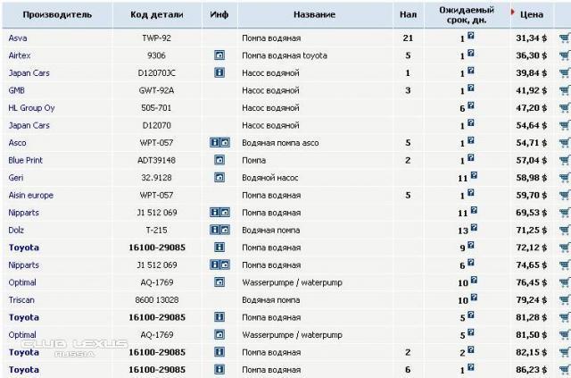 цены на помпу 1MZ