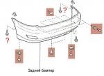 Схему всех деталей с номерами для заднего бампера/