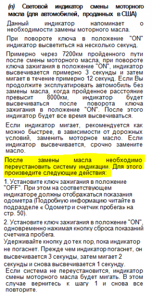Господа! Всем доброго времени суток!!!! Недавно стал счастливым обладателем GX470 2004 г. и сразу озадачился заменой жидкостей, согласно сервисной книге с последней смены масла машинка проехала 6000 миль. Да и датчик загорелся MAINT REQD в правом верхнем углу от тахометра, посмотрел в усной книге которая шла с машиной, написано, что это рекомендация к замене масла. Масло залил ка написано на крышке 5W30 Castrol синтетику, и фильтр оригинальный. Как сказал бывший хозяин это надпись после замены должна погаснуть. Я проехал уже где-то 250 км она до сих пор горит??? Не могу понять почему??? Подскажите может у кого такое было? И как с этим бороться???