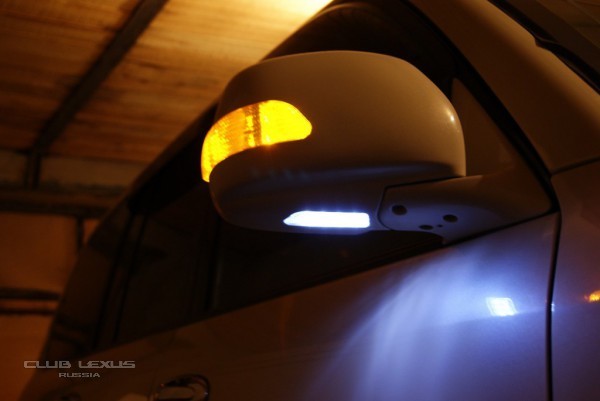 Если я правильно понял в нижней части зеркал стоят диоды подсвечиваю землю . Видел в инет магазине.