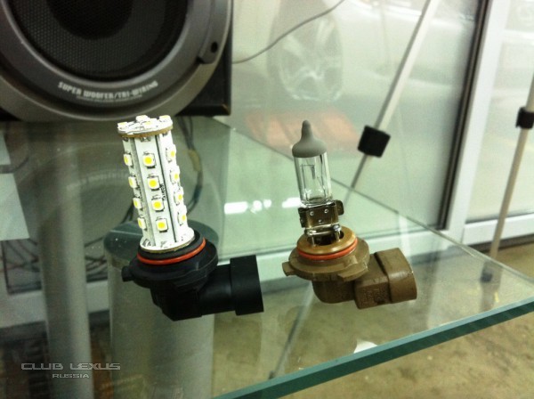 Справа обыкновенная лампа которая стоит в ПТФ, т.е. оригинал, слева новая LED в простонародии "кукуруза"