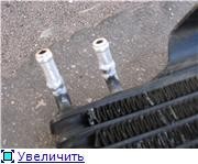 В очередной раз, профилактически осматривая авто снизу, обратил внимание на приличное сырое пятно справа (по ходу) на защите двигателя и подрамнике. Методом попробовал-понюхал предположил, что это масло АКПП. Откуда ему взятся справа? Конечно из радиатора охлаждения АКПП, который находится между бампером и подкрылком переднего правого колеса. Вскрытие показало, что масло идет из стыка резинового шланга и радиатора, т. е в месте соединения. Первая версия, что шланг перепрел и потрескался - не подтвердилась. У радиатора есть два штуцера: вход и выход. Оказалось, что в месте соединения со шлангом, штуцеры подверглись сильнейшей коррозии. Один из них прогнил на сквозь. Новый радиатор стоит 8 т. р. Я решил снять радиатор, закольцевать систему на денек и попытаться отремонтировать девайс. Аргон мне в помощь, все получилось. Бюджет, не поверите, 700 р за оба штуцера. Фото отчет ниже.