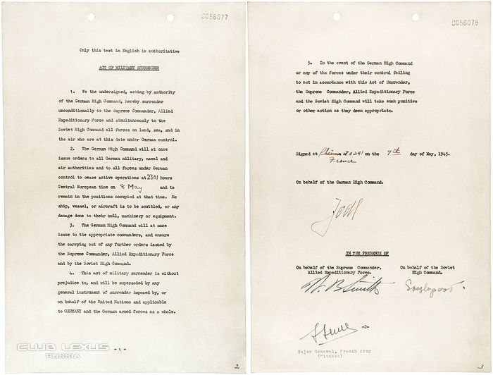 8 мая. В предместье Берлина Карлсхорст в 22 ч 43 мин (по центральноевропейскому времени) был подписан Акт капитуляции Германии.День Победы: хроника событий