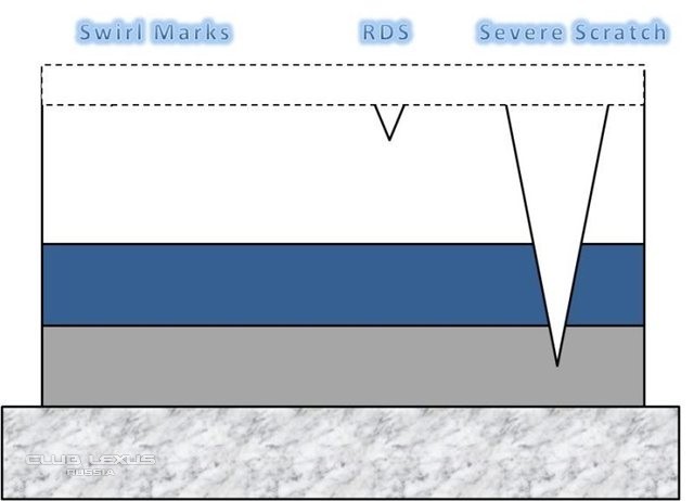 Восстановительная полировка гарантирует удаление порядка 85% - 95% дефектов. В то же время, во избежание критического снижения толщины ЛКП в зоне особо глубоких дефектов, некоторые дефекты не подлежат полной коррекции.) Возможно применение «вышкуривание» поверхности.