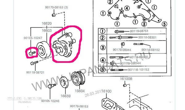 неспешно ищу корпус натяжного ролика и болт.