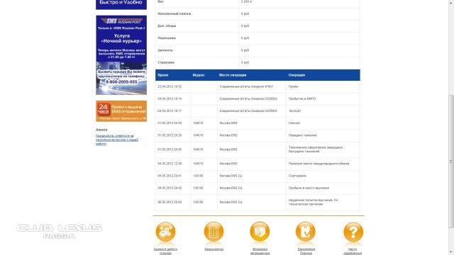 На сегодняшний день, 9 мая, идет вторая неделя моих мучений, ожидания "скоростной и дорогостоящей посылки". Не буду утомлять читателя хронологией своих звонков в EMS. А их приветливое и длящееся часами "Ваш звонок важен для нас, ждите ответа", за эти дни уже несколько раз полностью разрядило аккумулятор телефона, при этом с редким результатом в виде ответа.