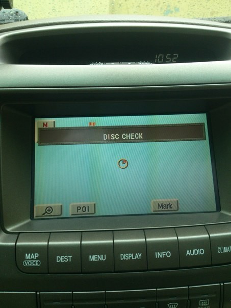 2. Фотография N2 - фотография экрана навигации, чтобы увидеть на переднем экране видео, вставляем в подлокотник диск и переключателем DISK (ниже экрана) добиваемся отображения надписи DVD. Если не играет - смотри выше