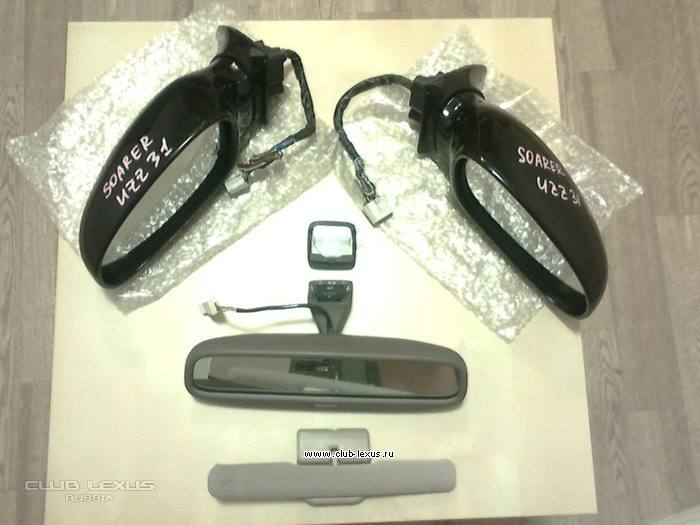 Боковые 15-контактные от Soarer - электро-регулировка положения, память положения настройки, автоматическое затемнение стёкол, подогрев стекла зеркала, складывания наружных зеркал, функция стряхивания воды.