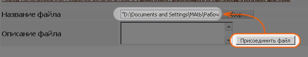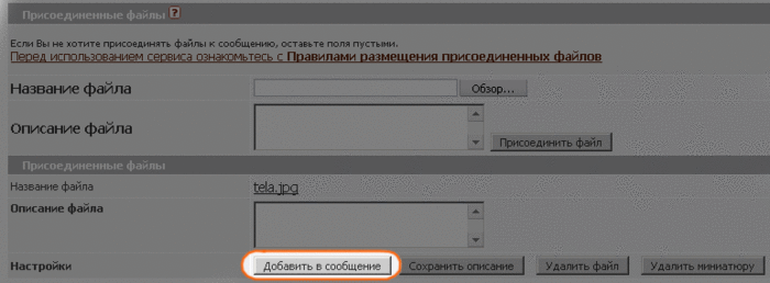 4.Убедились что путь к файлу прописан (и в окошке набран хоть какой то текст сообщения) и жмем "Присоединить файл"...