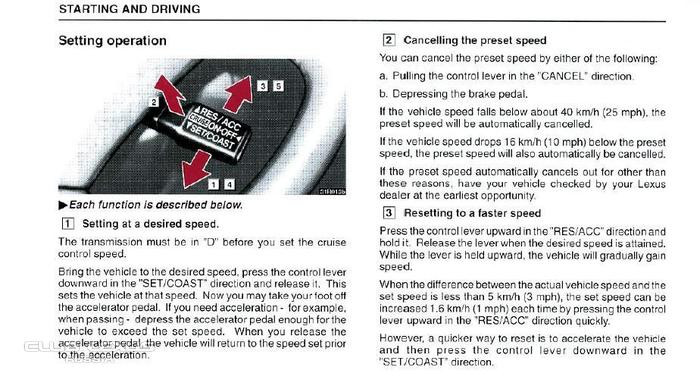 Подскажите пожалуйста как включить круиз контроль в Lexus RX300 (1999 г). И что там вообще за настройки можно делать! Взаранее спасибо!