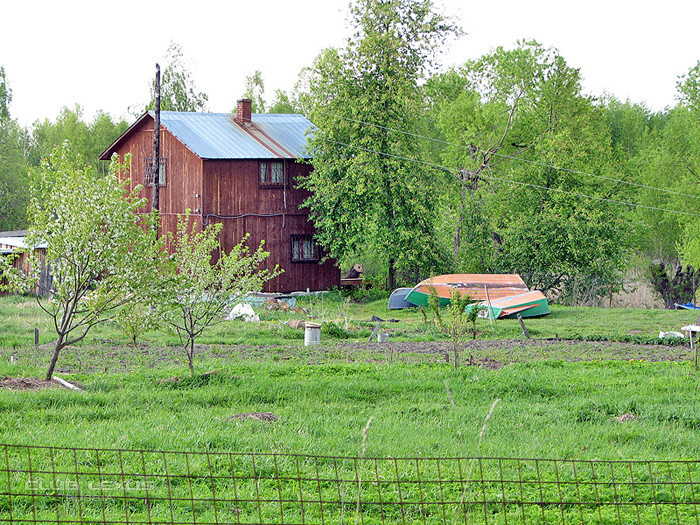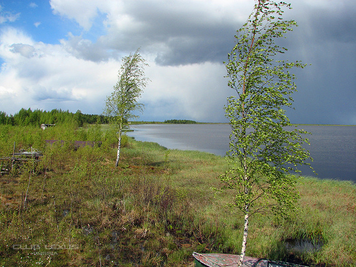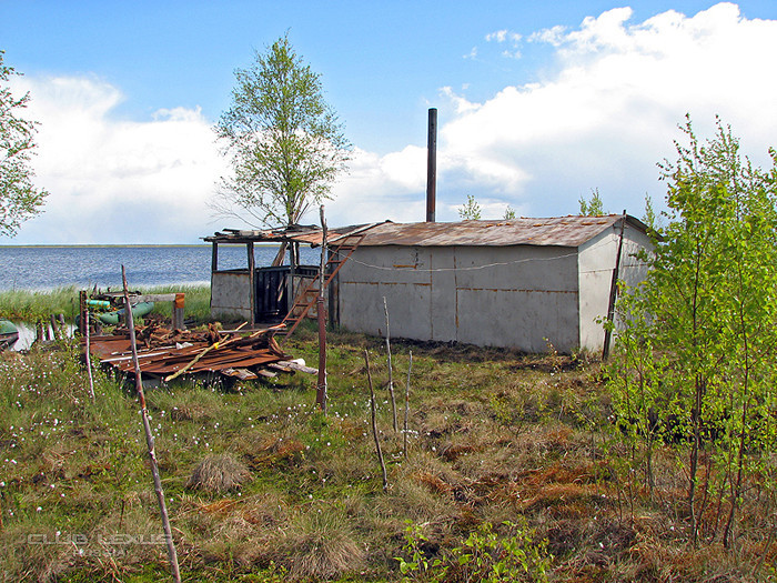 Вот и Светлое. На берегах "бытовки" рыболовно-охотничьих бунгало. Зимой, когда болото замерзает, их буксируют тракторами, на огромных лыжах.