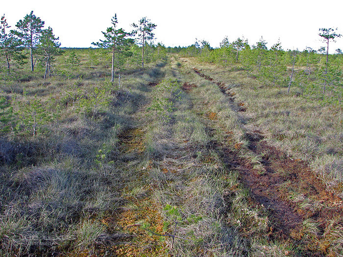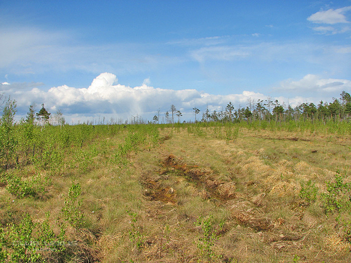 Через пару километров лес кончается. Дальше огромные просторы "тундры". Даже не верится, что где то там, внутри болот находятся огромные водные просторы озёр. Одно только Великое озеро в длину около 12-ти км, и в ширину около 5-ти. video.mail.ru/i...x/viktorovich_s/394/397.html