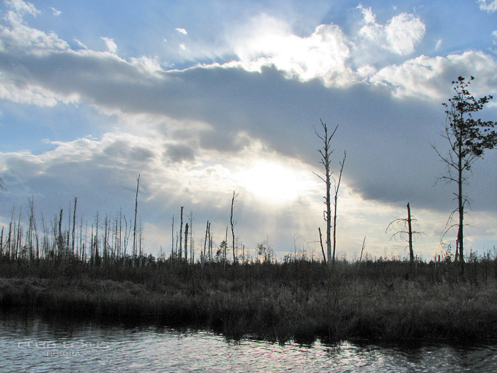 Какие ассоциации возникают у нас при слове болото? С одной стороны некая специфическая «красота» природы: - вечная сырость, зыбкая тряская поверхность, мох, змеи, тучи насекомых. В памяти возникают картинки топкой жижи-трясины с оконцами воды коричневого цвета среди камышовых зарослей, плотно закрытые ряской. Трухлявые стволы берёз. Кочки покрытые мхом, обманчиво создающие впечатление тверди. Дорог здесь нет. В лучшем случае зимники, летом фактически непроезжие. В стороне от зимников глушь нетоптаная. С другой стороны, болото это огромнейшая колыбель жизни, места массового гнездовья птиц, обитель разнообразных животных. Болота являются огромными конденсаторами влаги, месторождениями рек и речушек. Труднопроходимость, местами полная непроходимость, малая привлекательность для людей, сохранили первозданную красоту мест здешней природы. Специфический край, затерянный мир, естественный природный комплекс со свойственной ему неповторимой красотой.