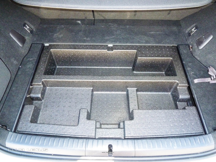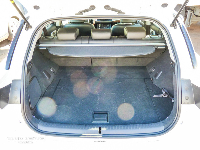 Багажный отсек на CT 200h откровенно невелик. Скрадывают пространство даже колёсные арки. Небольшой проём без проблем примет покупки из супермаркета, а при желании содержимое можно скрыть рулонной шторкой. Можно и разложить задние сиденья, что образует ровный пол.