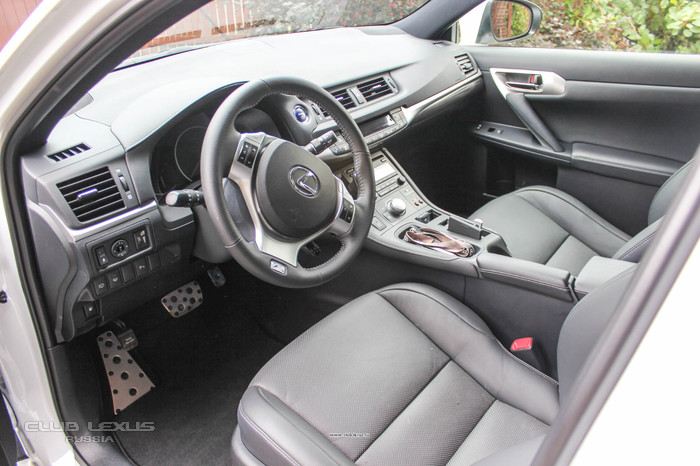 Версия F sport щеголяет обивкой сидений с выделяющейся перфорацией и алюминиевыми накладками на педалях. А сиденья «гражданской» модели CT 200h обиты чёрной кожей, но уже без столь ярко выделяющейся вентиляции.