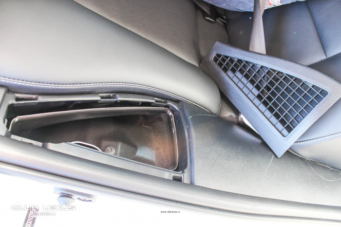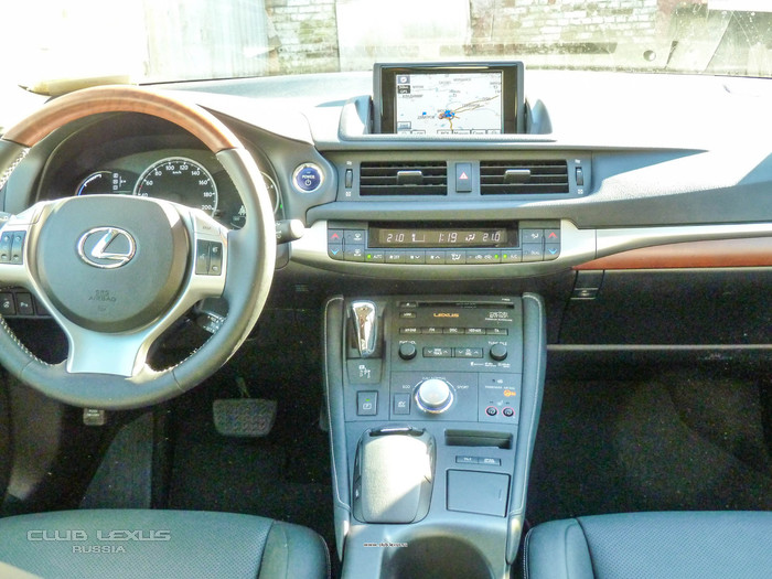 С таким же слоем деревянного шпона выполнена вставка в передней панели. Примечательно, что такая вставка – одна на весь интерьер. Традиционного, аналогичного декоративного дополнения по дверным обшивкам и в центральной консоли здесь нет. А в версии F sport, например, эта вставка стилизована под полированный металл. Учитывая то, что на вкус и цвет товарищей нет, я сфотографировал и изучил номера этих деталей, а так же приценился к ним в клубном магазине - около 5000 р. Замена единственной планки занимает буквально несколько секунд, при этом значительно меняя интерьерное восприятие. Возможно, кому-то из обладателей CT захочется разнообразить уже ставшее привычным, учитывая вполне разумную стоимость этих деталек.