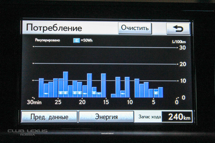 С одной стороны, удобно и эффектно. Например, можно посмотреть график потребления топлива. Анимацию работы силовой установки – сначала завораживает, потом надоедает (это проходят все «гибридоводы», принцип этой картинки не меняется у Toyota/Lexus многие годы). Радиостанции и треки. Отображение режимов климат-контроля - бестолковая и не нужная, на мой взгляд, возможность, для этого вполне хватает «штатного» узкого дисплея с кнопками, а управлять климатом "мышью" и вовсе абсурдная затея. Про календарь в машине я вообще лучше промолчу.