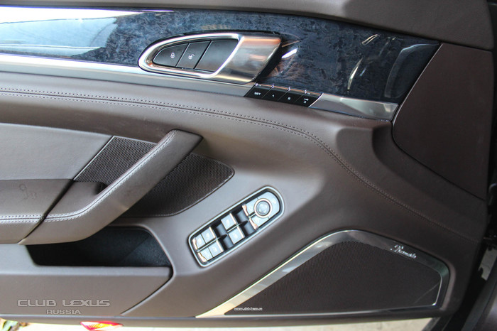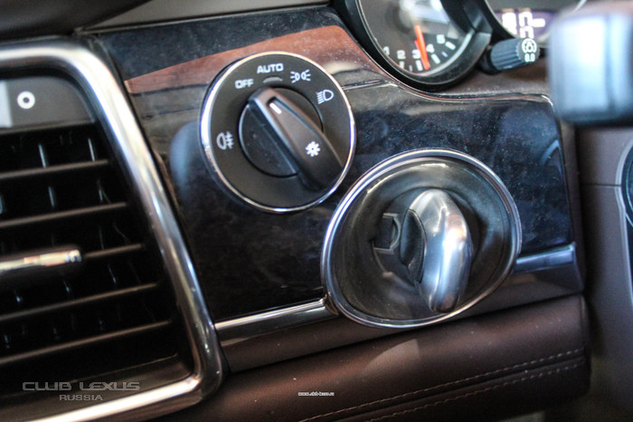 Вот чего у немцев не отнять, так это богатство комплектаций. Нет, не только моторов и коробок, а именно возможности комбинировать интерьер под свой вкус. В "Porsche на Таганке" есть шикарный стенд в отдельном помещении, на котором размещены все образцы доступных цветов и фактур дерева, кожи и металла. Это действительно впечатляет. Мне же предоставили машину с тёмно-коричневым кожаным салоном и чёрным деревом. В сочетании с чёрным цветом кузова, смотрится очень стильно.