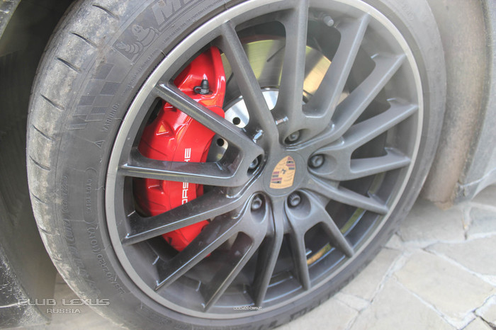 В зависимости от мощности двигателя, уровня комплектации и пожеланий покупателя, на Porsche Panamera устанавливают низкопрофильную резину, а диски могут быть 18, 19 и 20 дюймов. Выбор дисков не подкачал, как и другие опции индивидуализации у немцев. От базовых 18" до эксклюзивных 20", как на тестируемой машине.