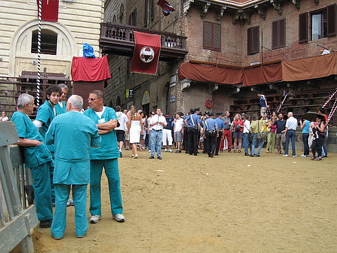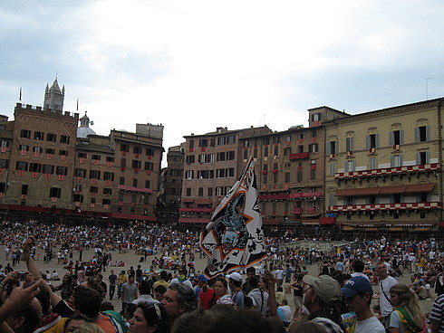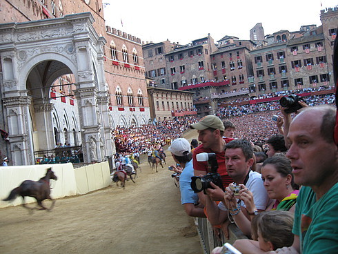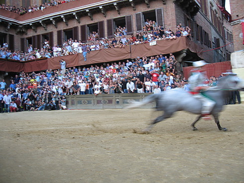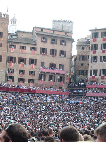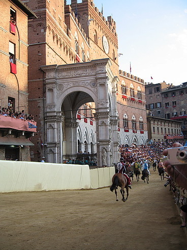 Сиена. ИМХО, известно меньше. Были 2 раза. Второй раз поехали на "Палио". Древнейшее национальное развлечение. Проходит 2 раза в год. Скачки без правил по центральной площади. Билеты купить невозможно, но в толпе постоять получилось. ПРАЗДНИК.