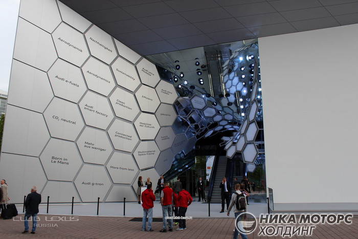 У них был целый павильон. Красивый. Сначала не зашел туда потому, что не очень интересуюсь этим брендом. Да и не слышал ни о каких громких ожидаемых новинках от них. Потом кто-то из коллег обмолвился, что, мол, привезли электрический кроссовер под названием e-tron quattro. Он считается предвестником модели Q6, призванной конкурировать с Tesla Model X. Но как только выяснилось, что это всего-лишь очередной прототип, времени заглянуть так и не нашлось ... . Да простят меня германофилы. Тем более, я всё же забрел к ..
