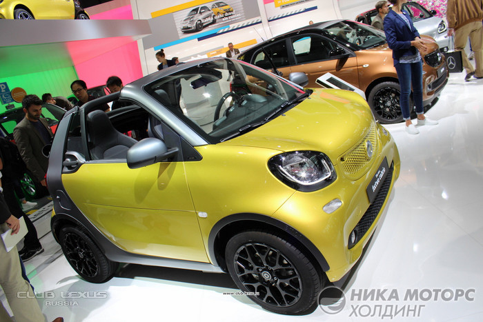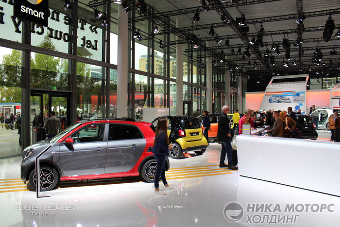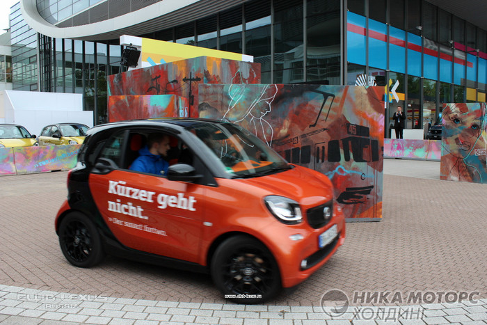 Поэтому ... Начнем все же с вешалки! Эту роль "выполняли автомобили SMART, выступая словно гардеробом в мир Mercedes, ограждая вход в зал старшего собрата