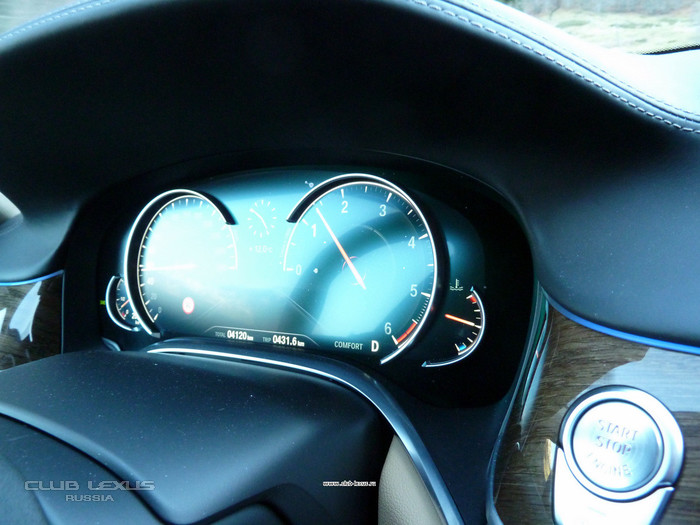 Руль делает чуть больше двух оборотов от упора до упора - совсем не много, учитывая его вовсе не "автобусный" диаметр, как в первых "семерках". Поначалу рулевое кажется слишком легким, но как и положено, он наливается тяжестью и азартно управляется с набором скорости. Именно на дороге этот двухтонный автомобиль моментально заставляет забыть о своей массивной сущности, управляясь с удивительной точностью.
